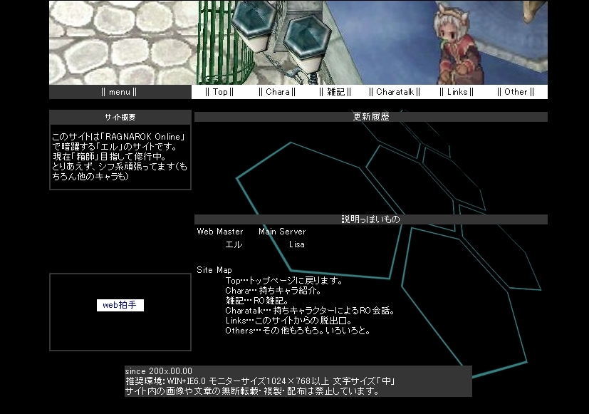 「おもひむすぼほる」以外にRO用に「銀髪本舗」というサイトをもってたんですが、初期公開時のデザインがあまり気に入らなかったので、改装用に作っていたサイトのデザイン。
