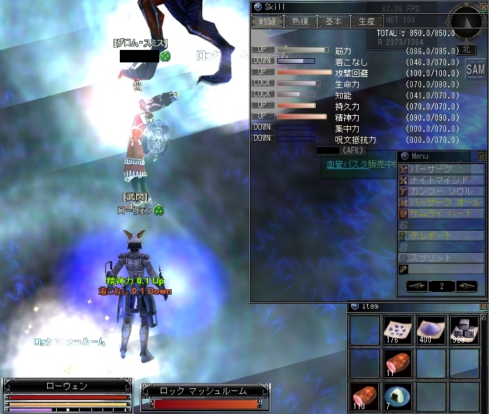 いつものなら戦技上げを同時進行でサムライハートやカンフーソウルを使うが、今回の戦技上げは移動中のセンスオブワンダーの失敗上げのみ。